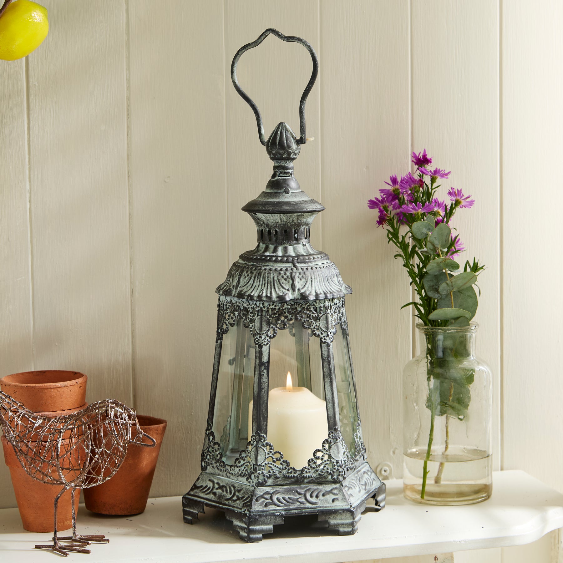 Add vintage charm to your home with our Antique Rustic Crown Lantern Collection. Each lantern features a distinctive aged finish and intricate metal detailing, creating a timeless look that complements both traditional and modern interiors. Made from sturdy metal and glass, these decorative lanterns are perfect for displaying candles, LED lights, or fairy lights to create a warm, atmospheric glow.