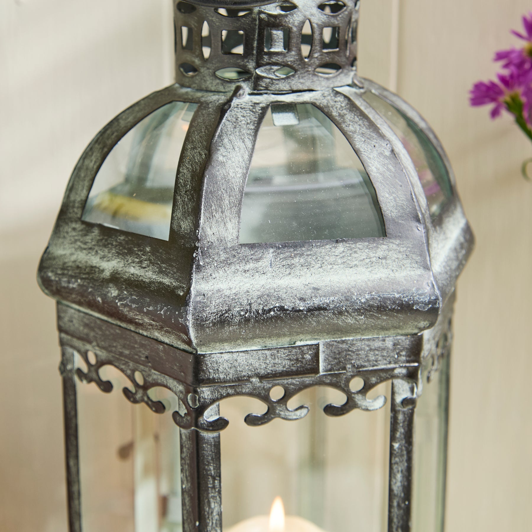 I love this lantern. It’s so different from any others I have but it’s so pretty especially when the candle in it comes on. Very pleased with my purchase