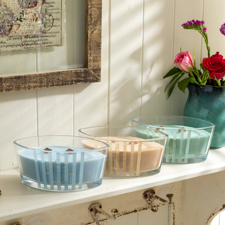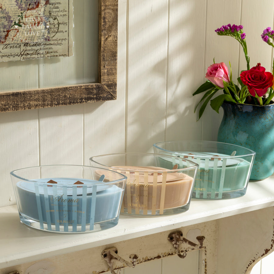 Elevate your home’s ambiance with this luxurious aromatherapy scented candle. Crafted with premium wax and a stylish wooden wick, this candle is housed in a sleek glass container adorned with elegant stripes. Available in three delightful scents – Sea Breeze, Life in the Sand, and Party Beach – each candle delivers a unique fragrance experience designed to refresh and relax your senses. Perfect for setting a calming mood, these candles are ideal for gifting or personal indulgence. Each variant is sold separately, allowing you to mix and match your favourites.