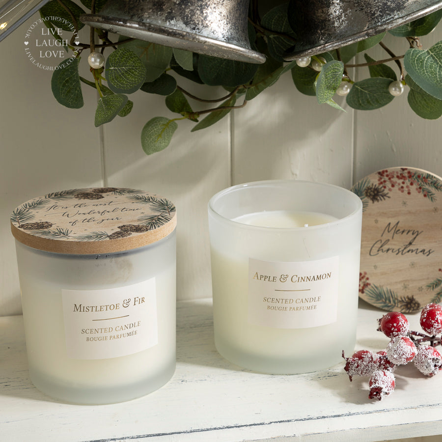 Bring the essence of the holiday season into your home with these Festive Scented Candles, available in "Mistletoe & Fir" or "Apple Cinnamon." Each candle comes with a beautifully decorated wooden lid, featuring charming holiday designs. These candles provide a warm, inviting fragrance to enhance your festive atmosphere. Perfect for gifting or adding a cozy touch to your home, these candles create the ideal ambiance for Christmas gatherings or quiet winter evenings. Sold individually.