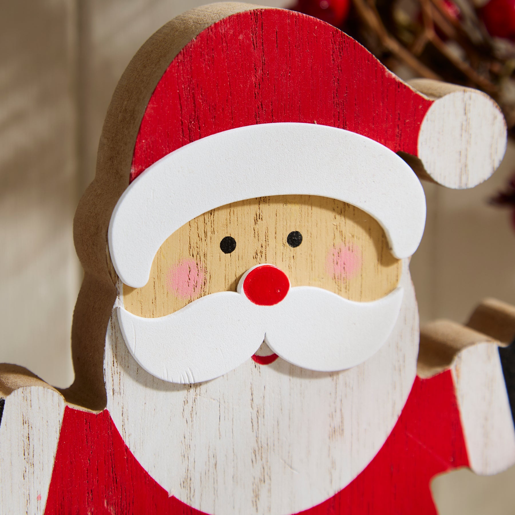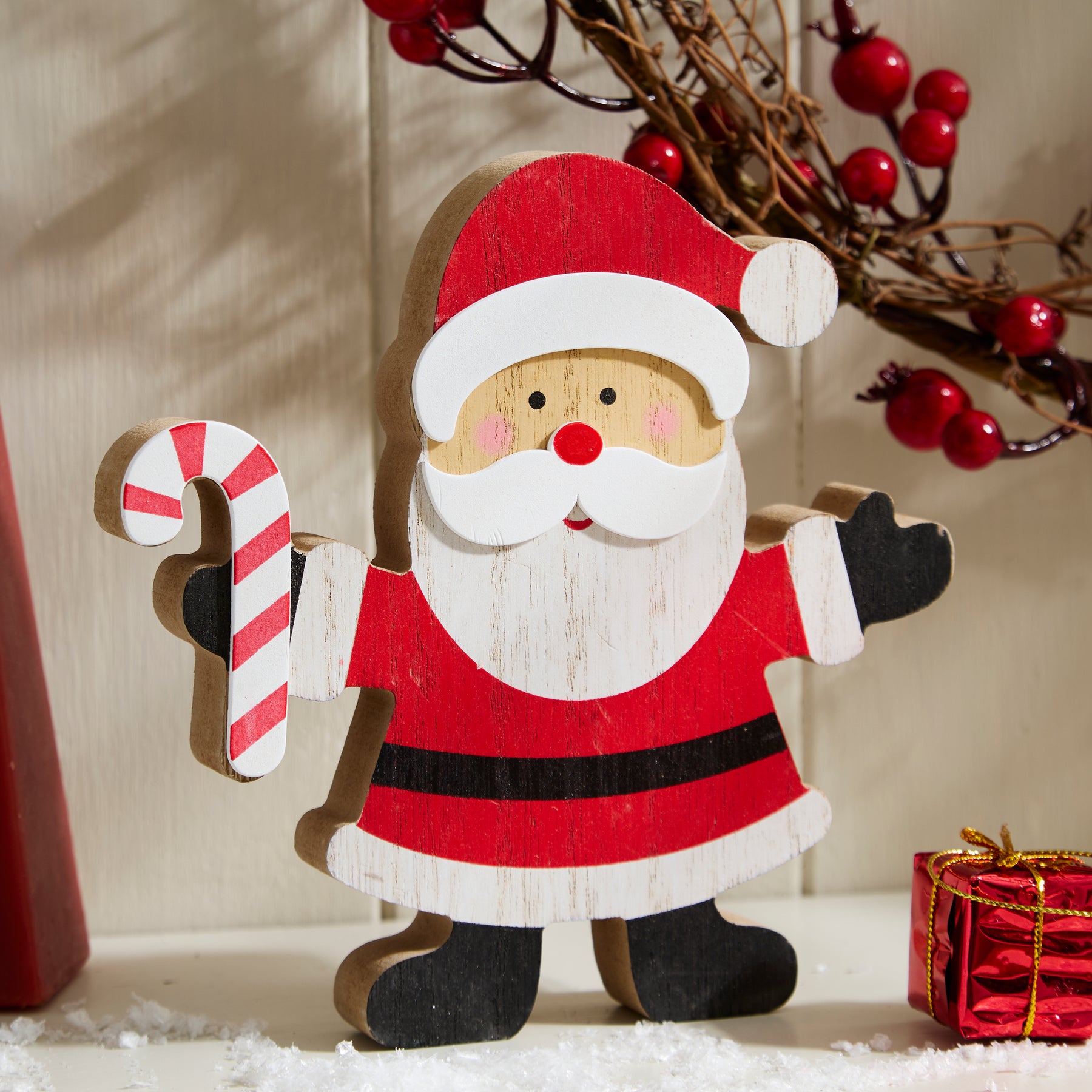 Festive Wooden Santa Shelf Sitter with Candy Cane