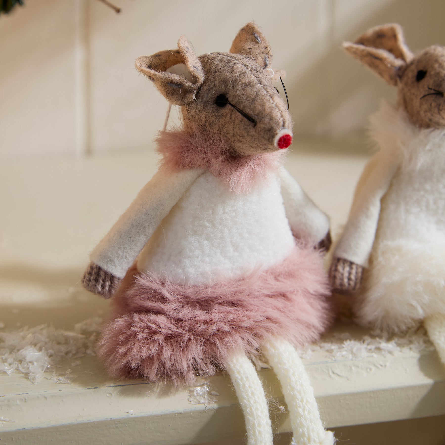 Hanging Mouse Ballerina Decoration with Fluffy Dress