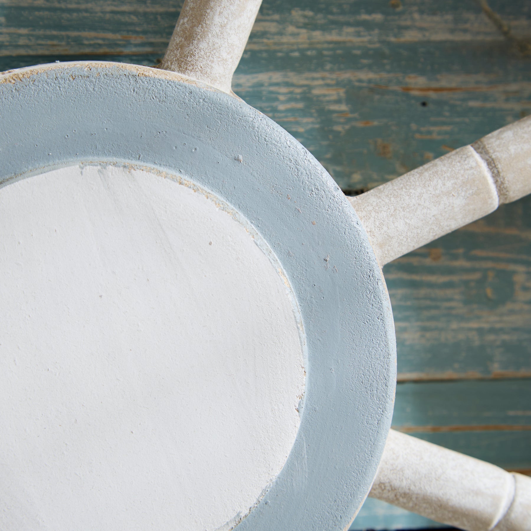 Large 61cm Nautical Ship Wheel Wall Decor – White & Blue with Rope Detailing