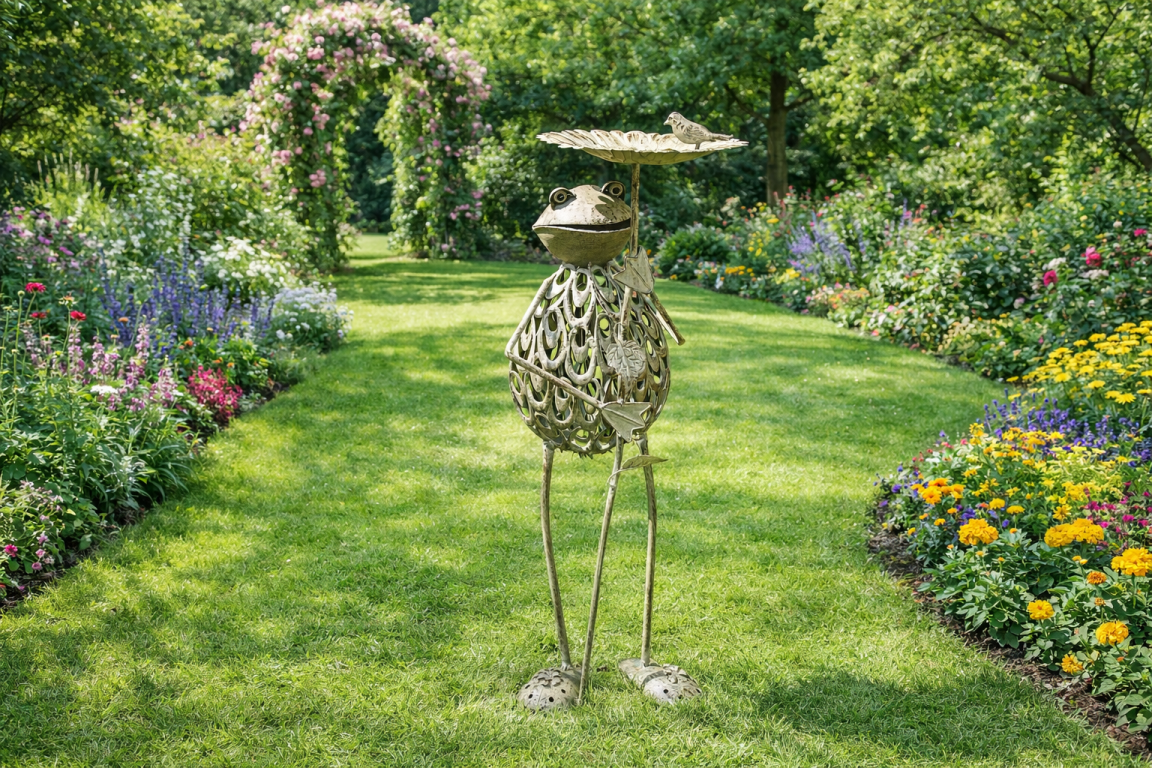 Metal Frog Bird Feeder Garden Ornament – Whimsical Outdoor Décor