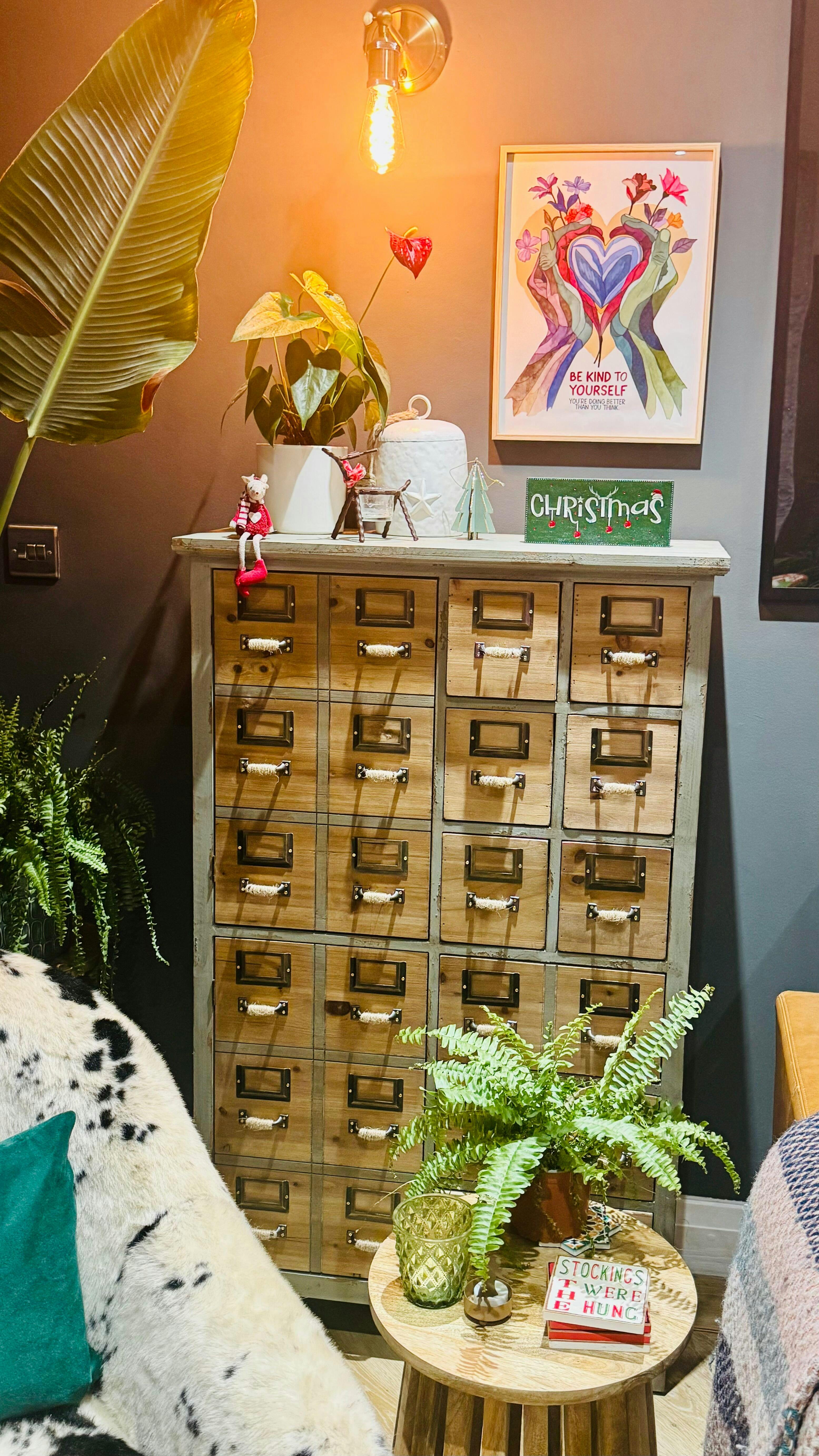 Absolutely delighted with this cabinet - looks really great in my lounge and exactly as it does in the picture. It looks very unique! Has lots of different drawer sizes and some cupboard space, which you’d never tell until you actually open the drawers. This seemed to be a lot cheaper than similar apothecary style chests that I looked at. Delivered really quickly and great communication from the delivery company.
