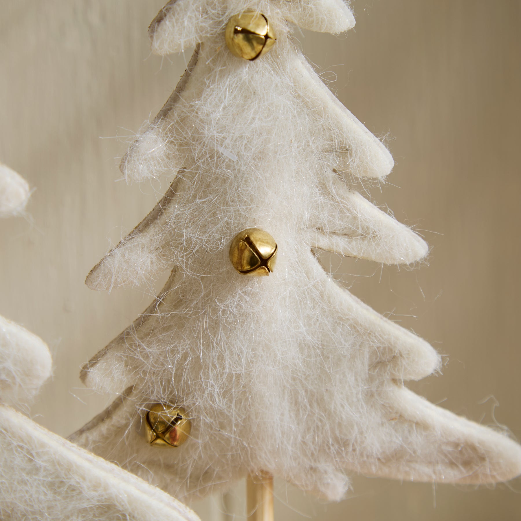 Pair of Felt Christmas Trees with Gold Bells and Star – White Festive Table Decorations