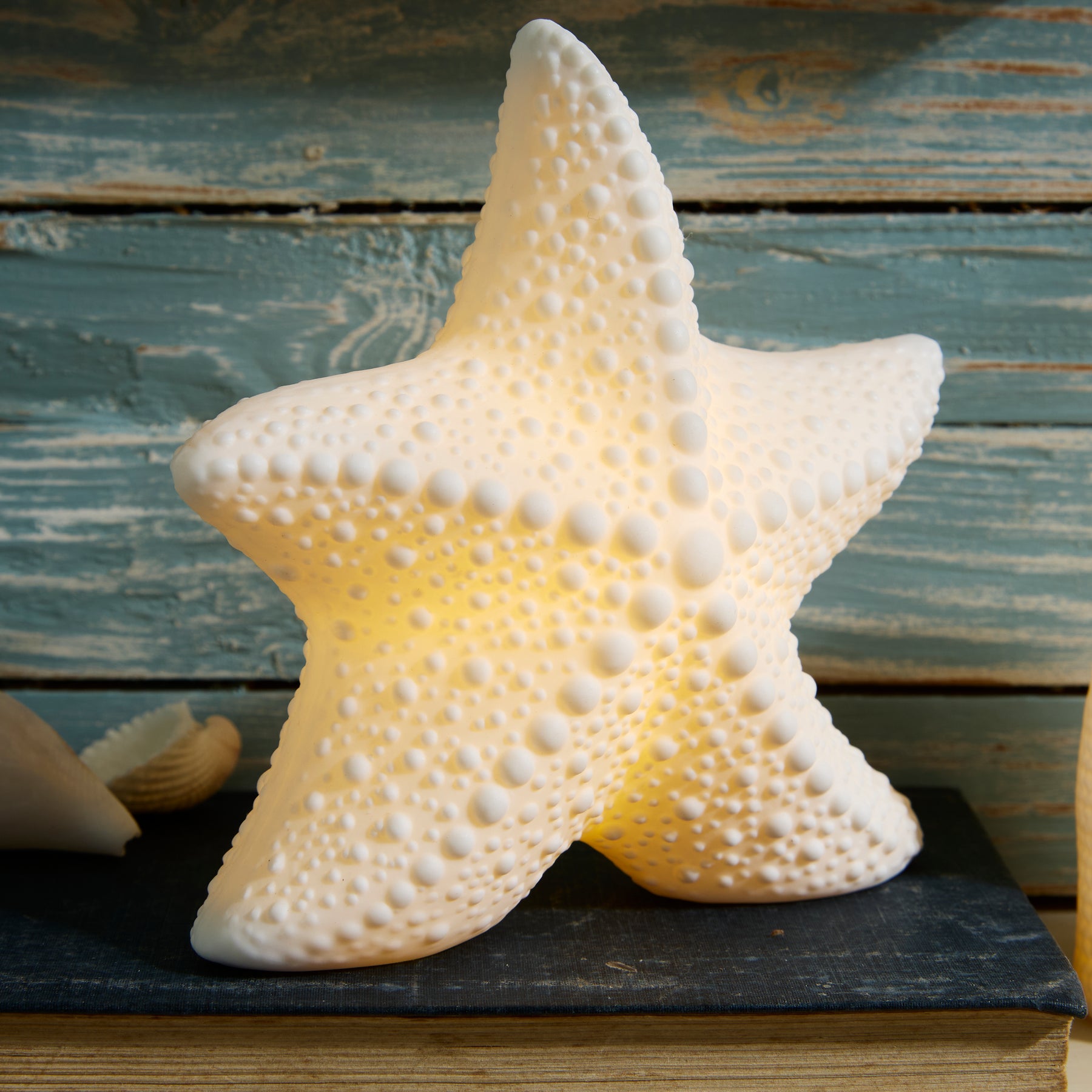 Porcelain LED Starfish Light – White Coastal Night Light Ornament