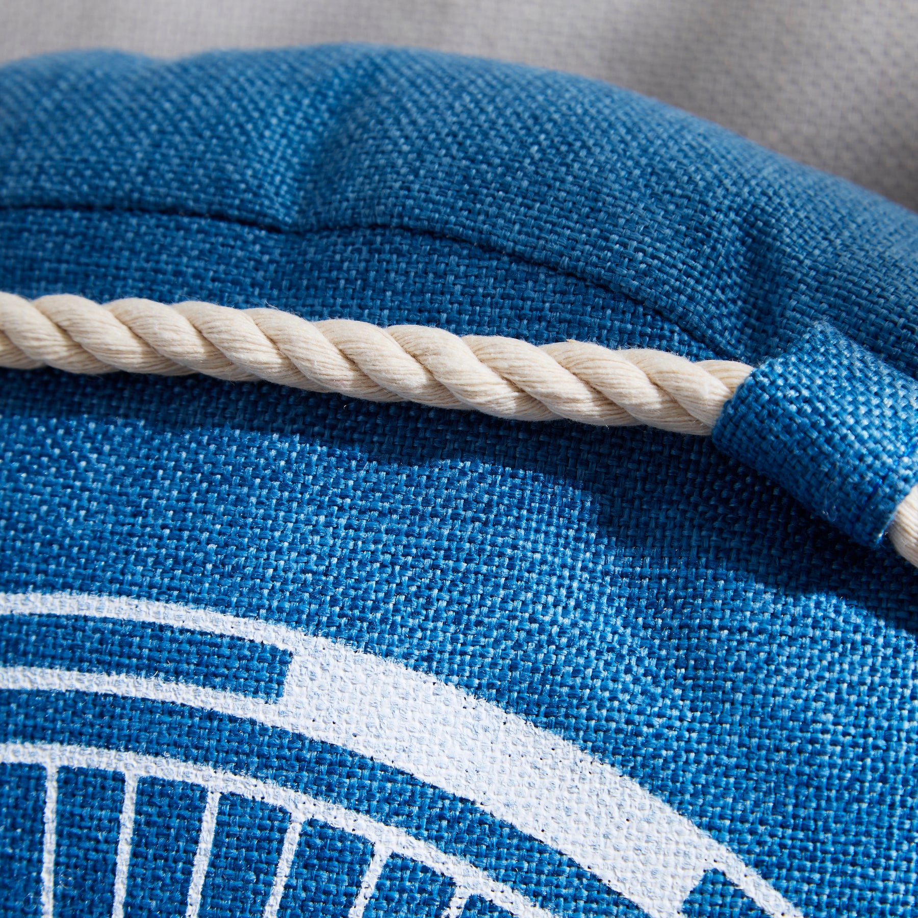 Round Nautical Compass Cushion – Blue Decorative Pillow with Rope Detail