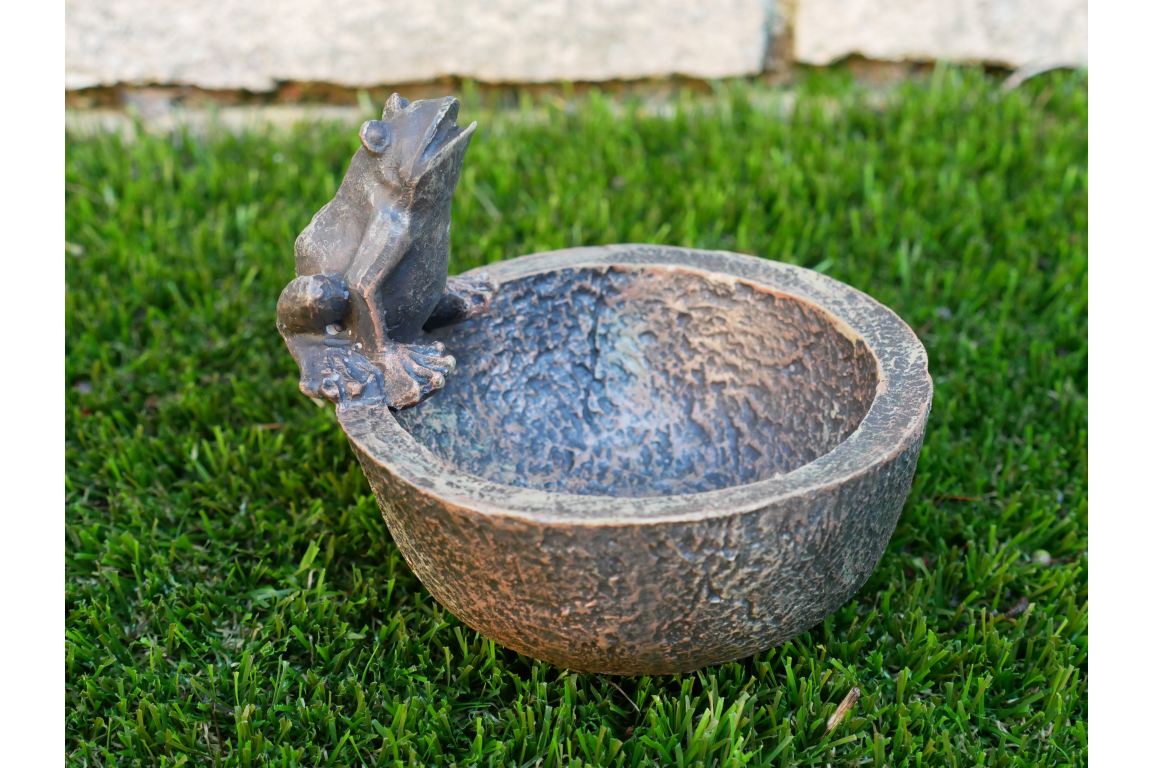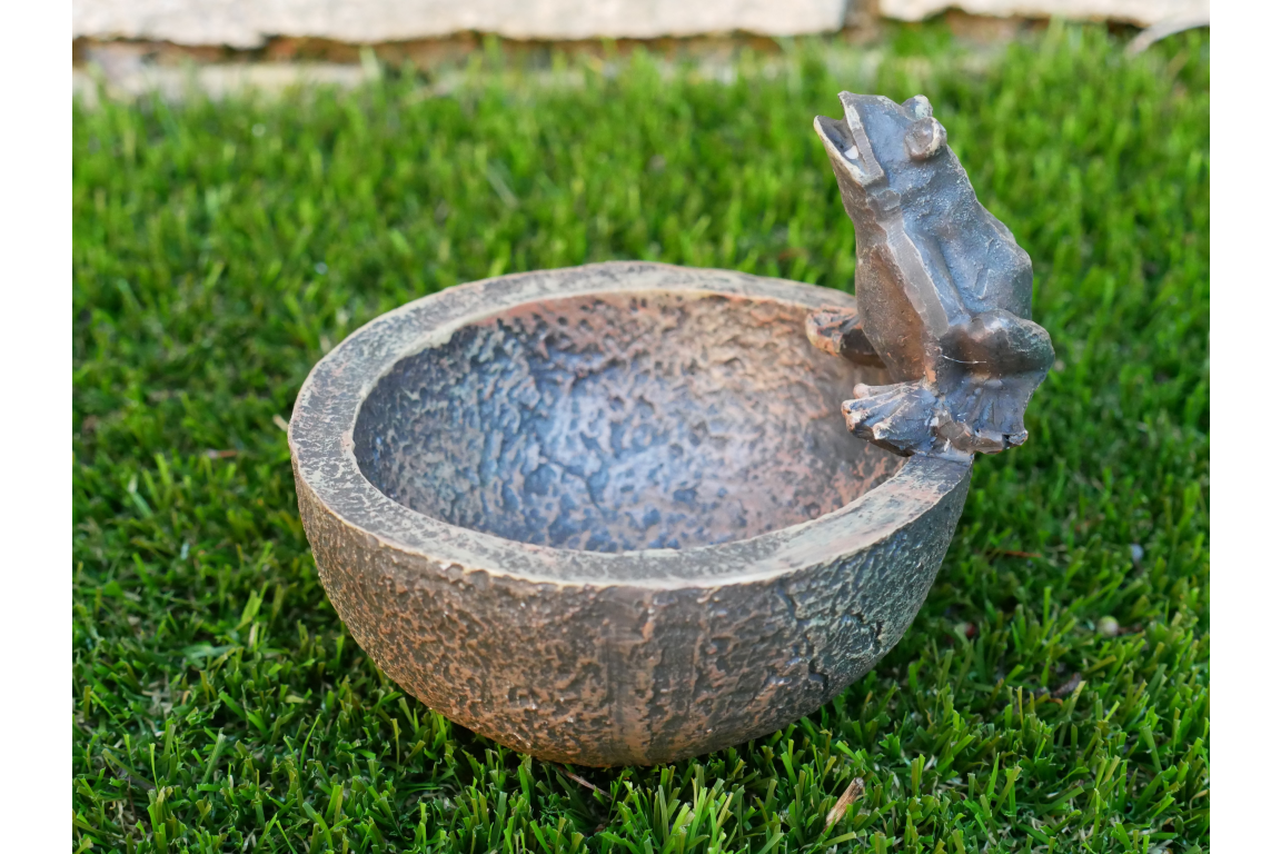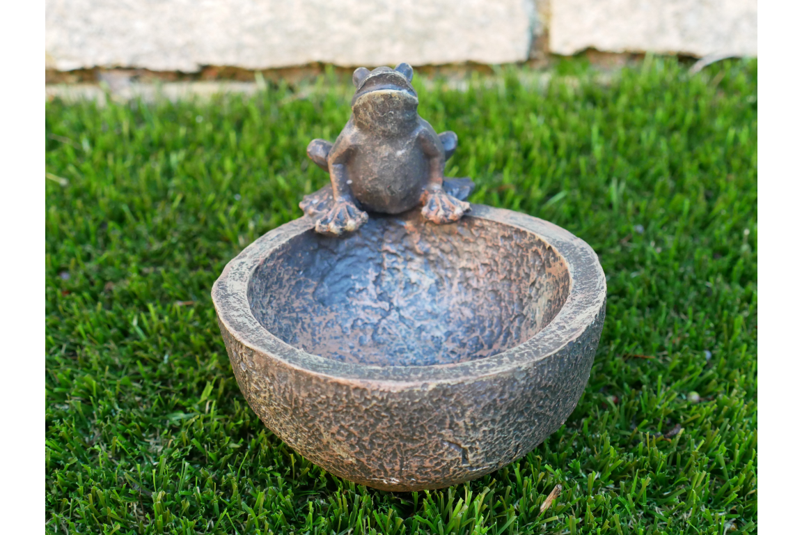 Rustic Bird Feeder Bowl with Frog Detail