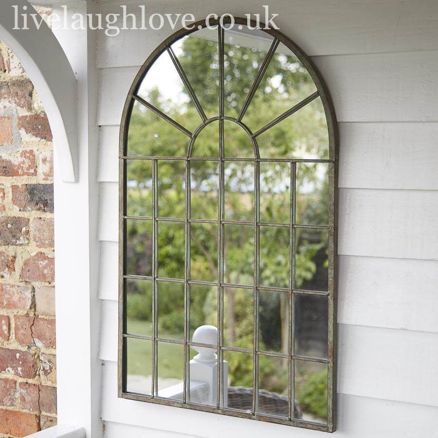 This beautiful arch window-styled metal framed mirror has a single pane of glass with frame overlays to achieve the window style. It has a rustic finish for a vintage look making it the perfect decorative addition to a vintage-inspired home. Has strong fixings on the reverse for wall mounting. Screws not included. Suitable for outdoor use.