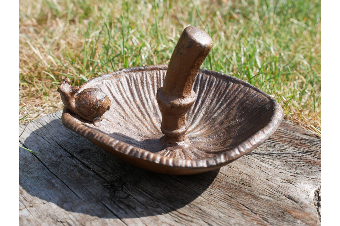 Mushroom Metal Bird Feeder Bowl with Snail Detail