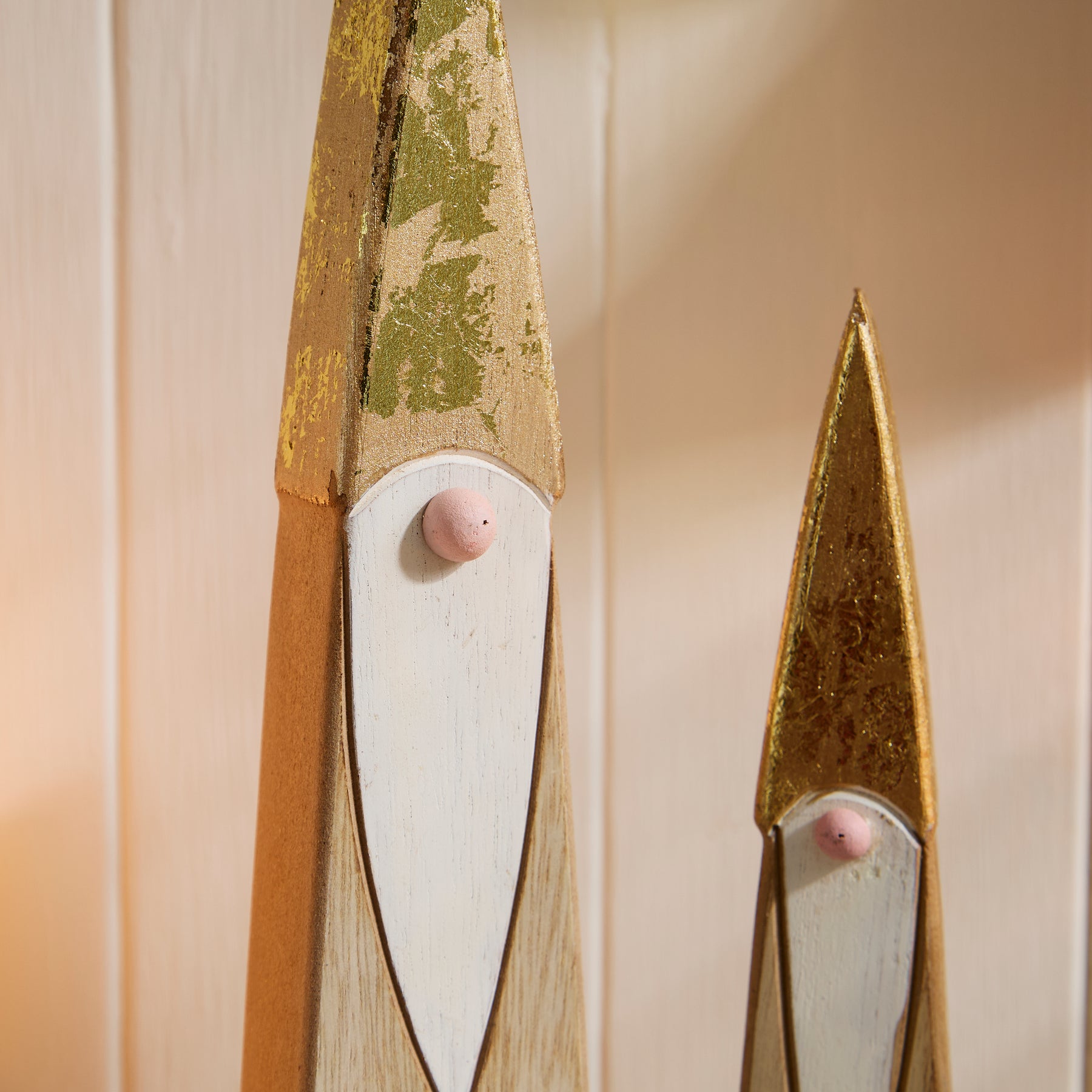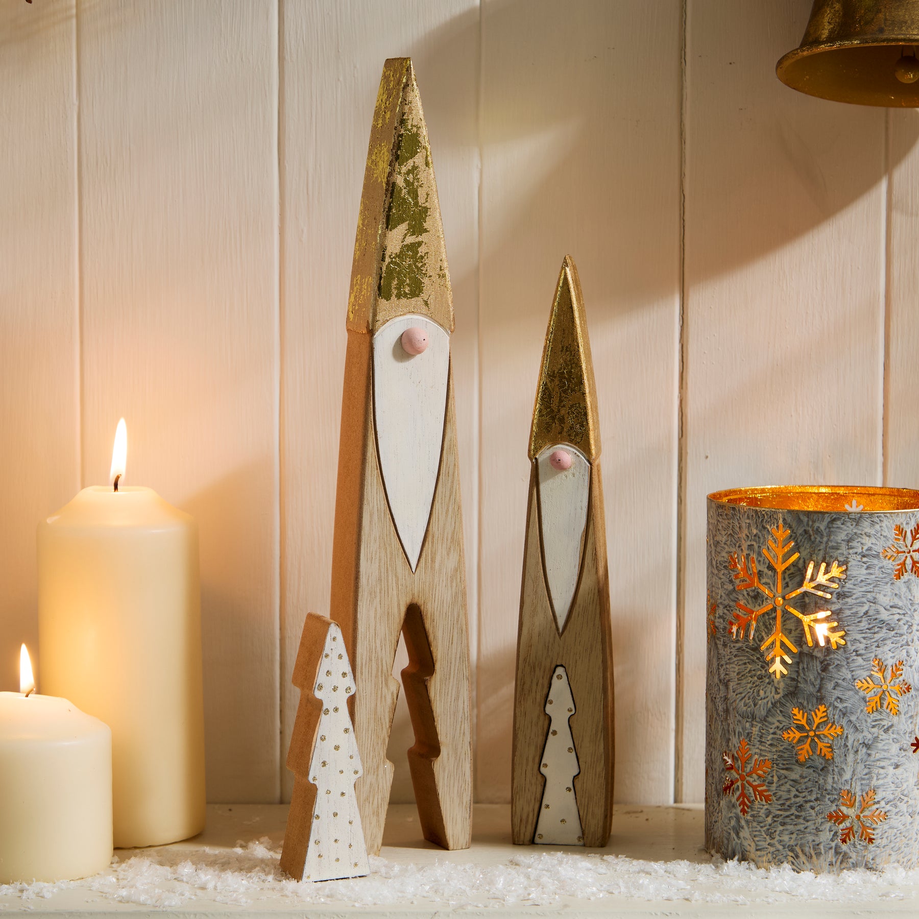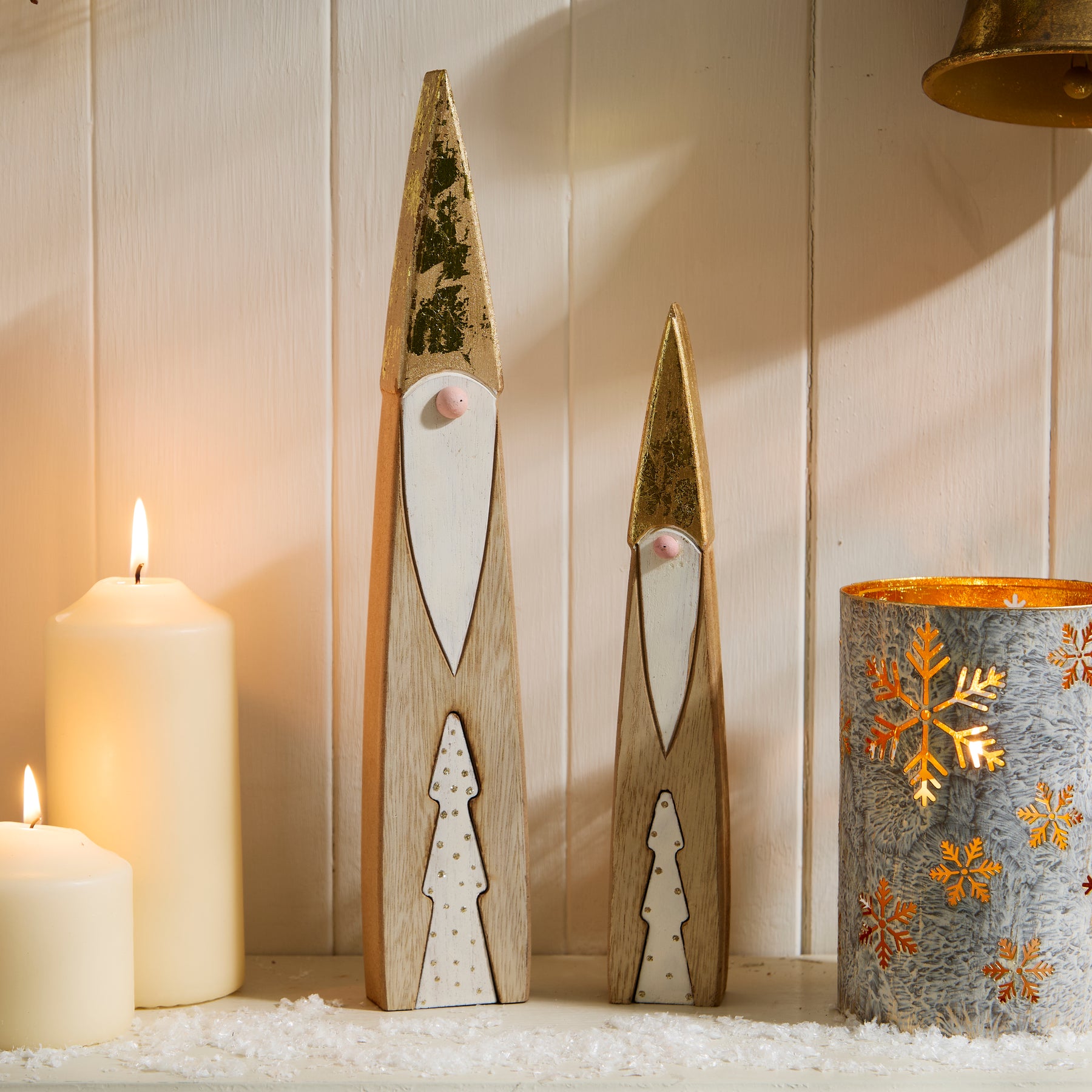 Scandinavian Wooden Santa Claus Ornament - Gold Hats