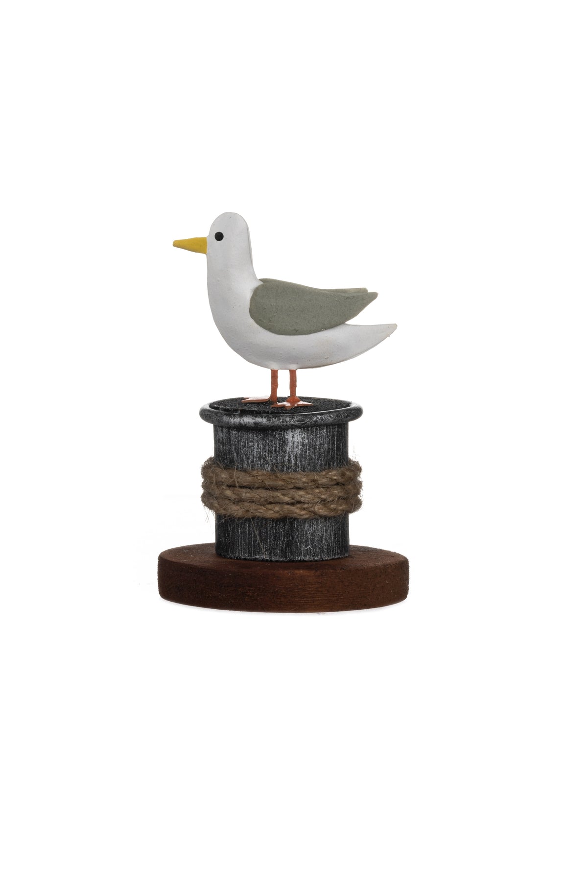 Seagull on Wooden Mooring Post: W5cm x H7.9cm x D5cm;