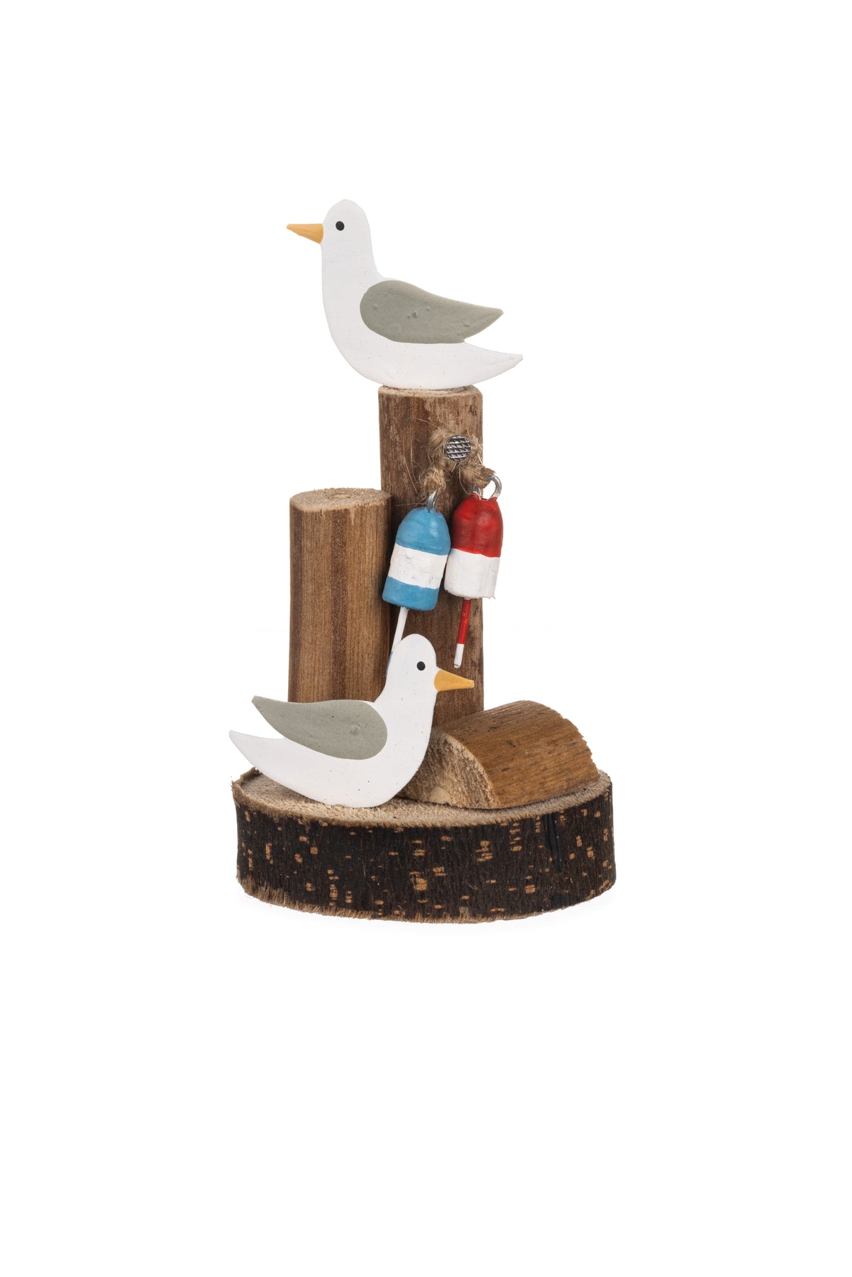 Seagulls on Driftwood Base with Buoys: W5cm x H9cm x D5cm;