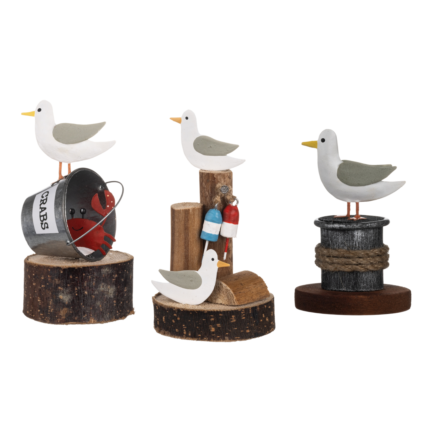 Set of 3 Nautical Seagull Ornaments on Wooden Bases