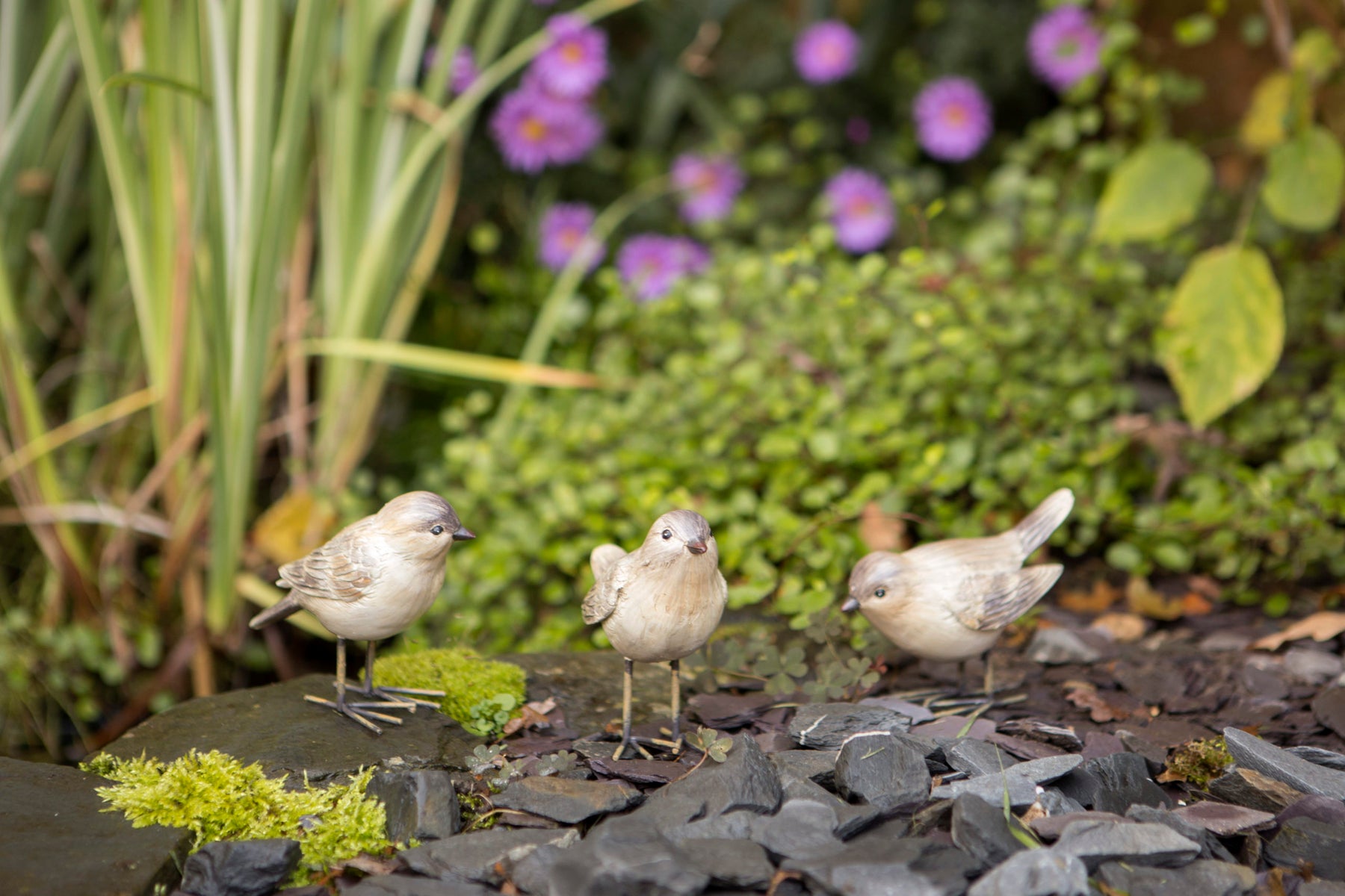 Add charm and character to your home or garden with this set of 3 decorative finch ornaments. Crafted from durable polyresin with softly detailed feathers and a natural finish, each finch stands on slender legs for a realistic touch. Perfect for styling among plants, on patios, shelves, rockeries or along garden borders, this delightful trio brings a gentle woodland feel to both indoor and outdoor spaces.