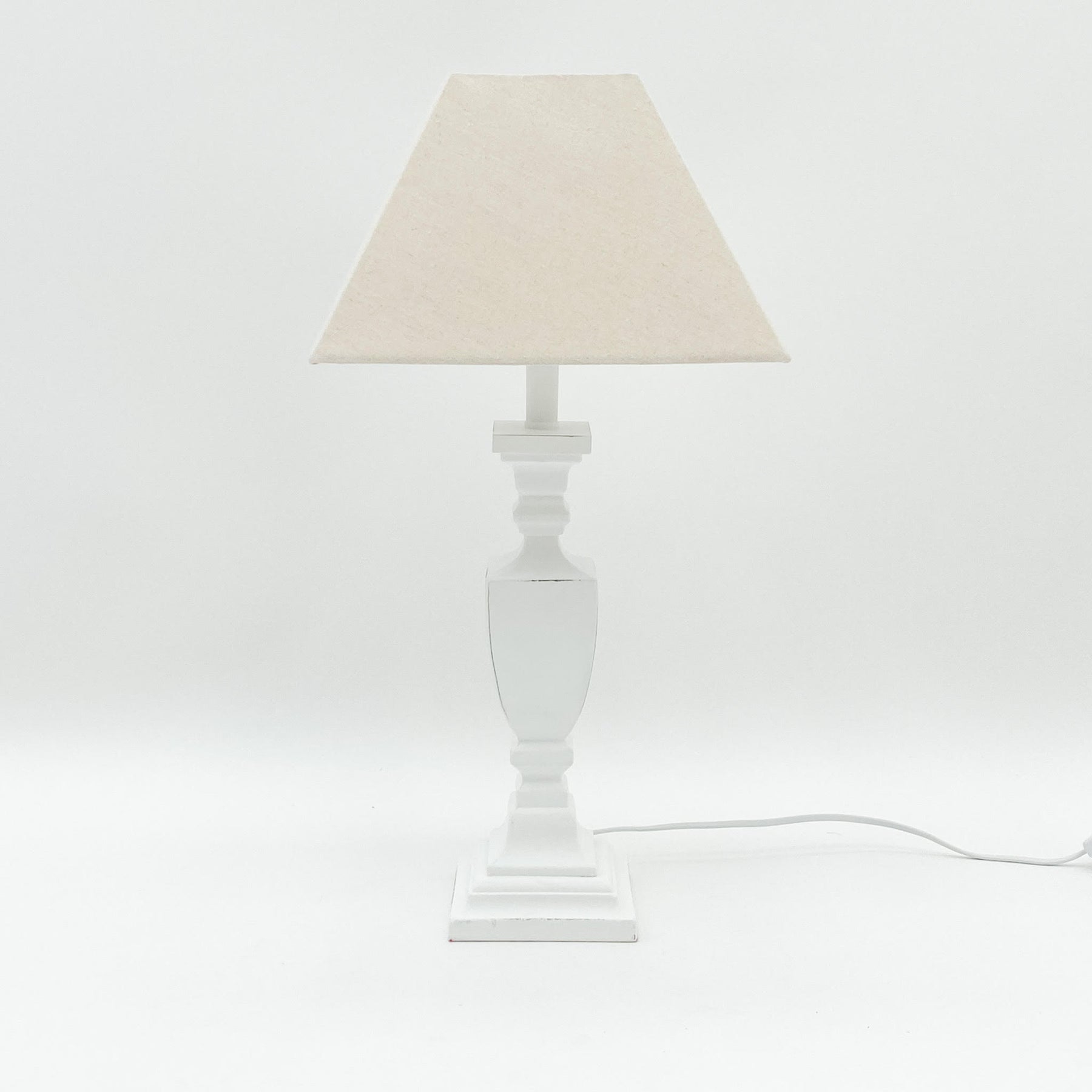 This white wooden table lamp combines timeless elegance with a clean, simple design. The painted wooden base is complemented by a soft round fabric shade, giving it a fresh and versatile look that works beautifully in cottage, coastal, and shabby chic interiors. Perfect for bedside tables, console tables, or living room accents, it provides a warm, cosy glow that enhances any space. A stylish and practical piece that blends seamlessly into both traditional and modern homes.