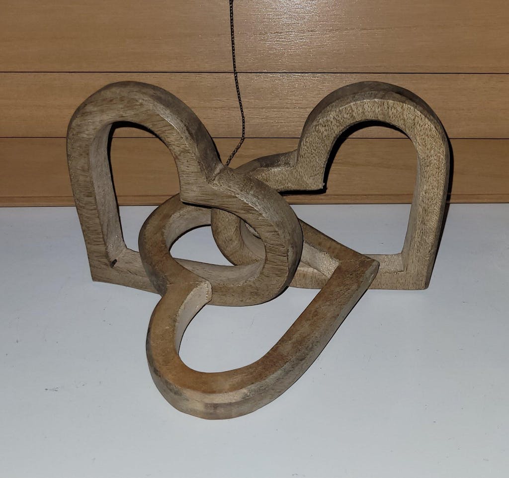 - Decorative wooden intertwined hearts ornament