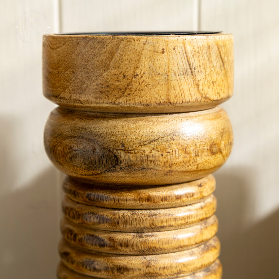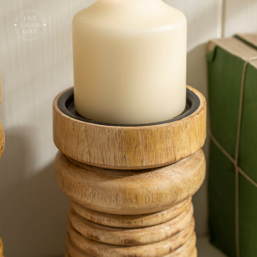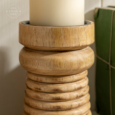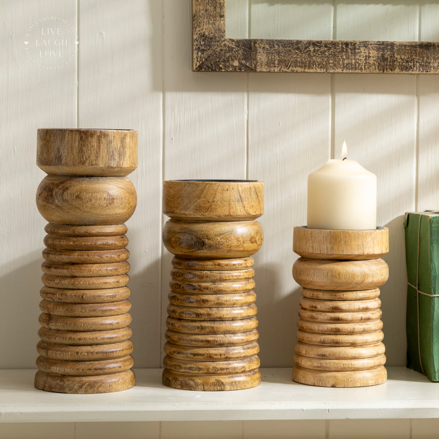 Wooden Ribbed Candle Holder - Small, Medium, Large, or Set of 3